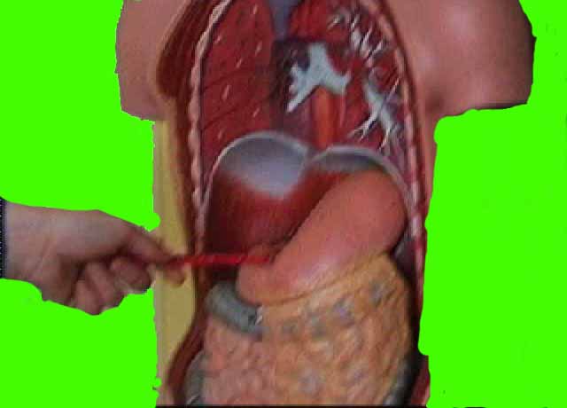 Der Magen ist ein Muskelsack. Hier wird die Nahrung gespeichert und mit dem Magensaft vermischt und weiter zerkleinert. Dann wird dieser Nahrungsbrei aus dem Magen in kleinen kleinen Portionen in den Dünndarm gebracht.