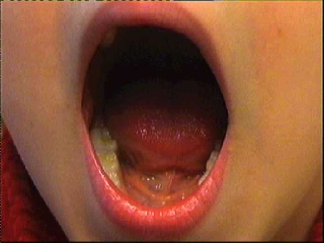 Im Mund wird das Essen gekaut. Im Mund kommt eine Flüssigkeit dazu. Die Flüssigkeit heißt Speichel {Spucke}. Das Essen wird so zerkleinert und geschmeidig gemacht.