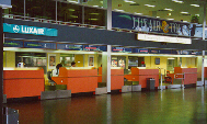 D’abord on achète des tickets. Ensuite on va chez les comptoirs d’enregistrement. On doit mettre le bagage sur une balance. L’employé(e) regarde combien le bagage pèse. Il ou elle fait un ticket autour de la poignée. Il ou elle met le bagage sur le tapis roulant. Le bagage à main ne doit pas dépasser vingt kilos pour un passager. On peut prendre un chien avec. Si le chien pèse moins que cinq kilos on peut l'emmener dans la cabine. Si le chien pèse plus que cinq kilos, le chien doit aller dans une cabine spéciale. Dans la cabine il y a la même température que dans la cabine des passagers. Un enfant peut voler seul. Les parents doivent remplir un formulaire. Le passager a le choix entre une place fumeur ou non-fumeur. On doit se rendre au plus tard 30 minutes avant le départ à l’aéroport.